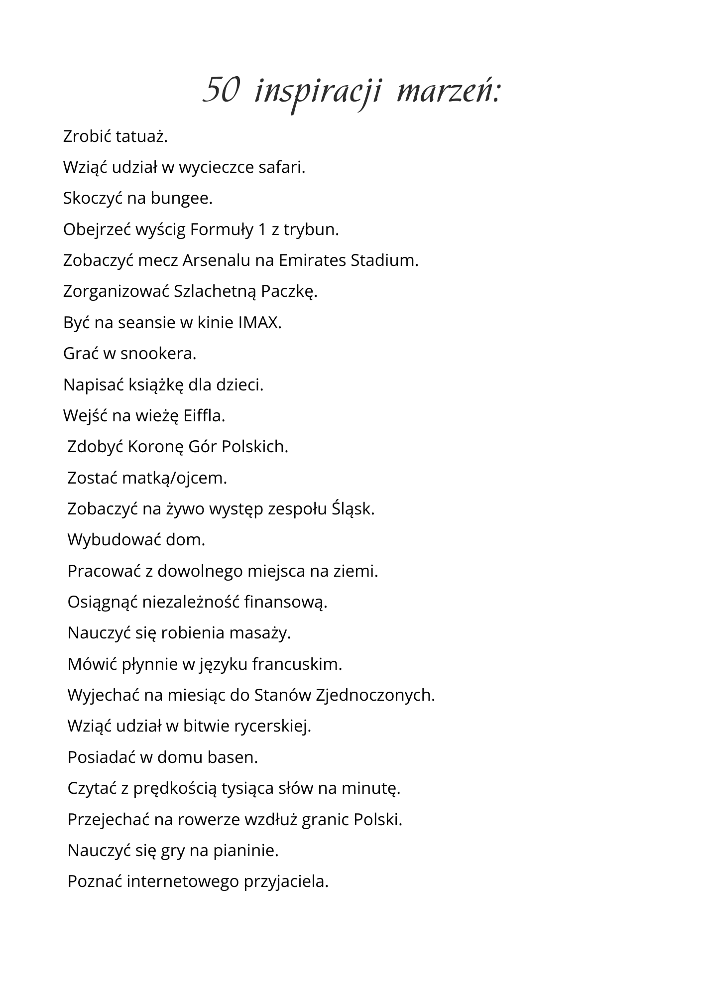 50 inspiracji marzeń