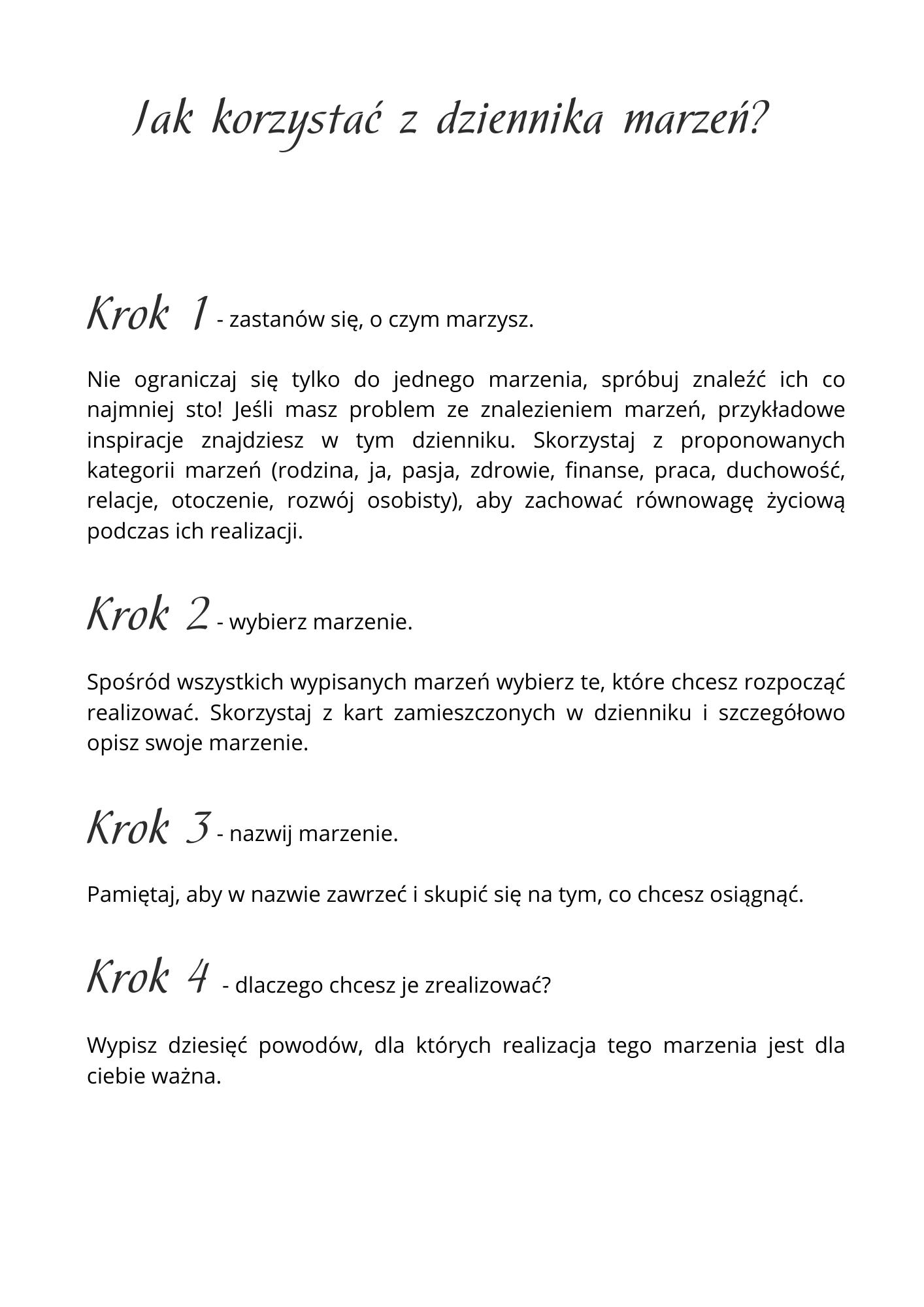 W dzienniku marzeń zamieściliśmy sto kart do pracy z marzeniami.